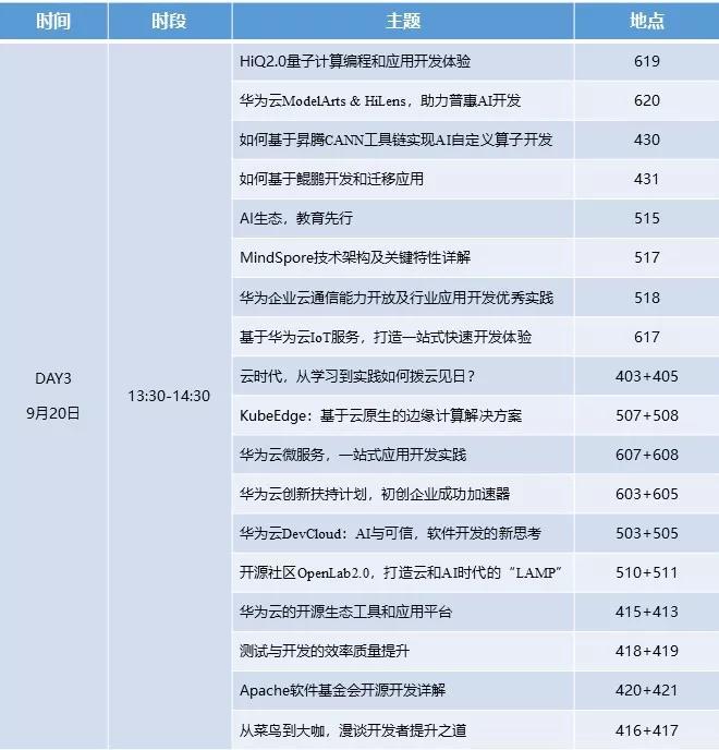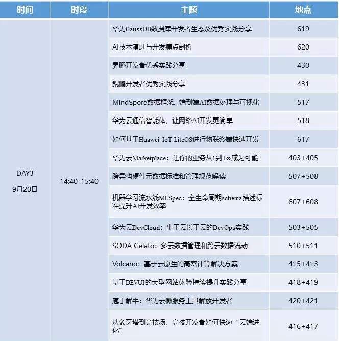 与主题演讲相同,DAY 3的Session议程同样以开发者为主角呈现技术分享,主题覆盖云原生数据库、人工智能、深度学习、DevOps、微服务、物联网、边缘计算等多种开发领域的热点议题。