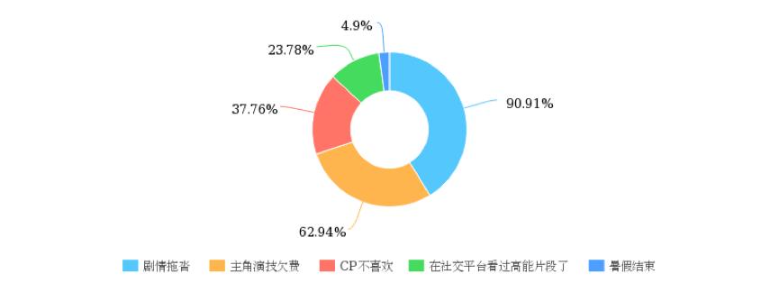 微博式追剧虽并非常态,但值得注意的是,在“弃剧”原因的选择上(多选),的确有24%的观众会因为在社交媒体看过关键剧情片段而放弃正片的观看。
