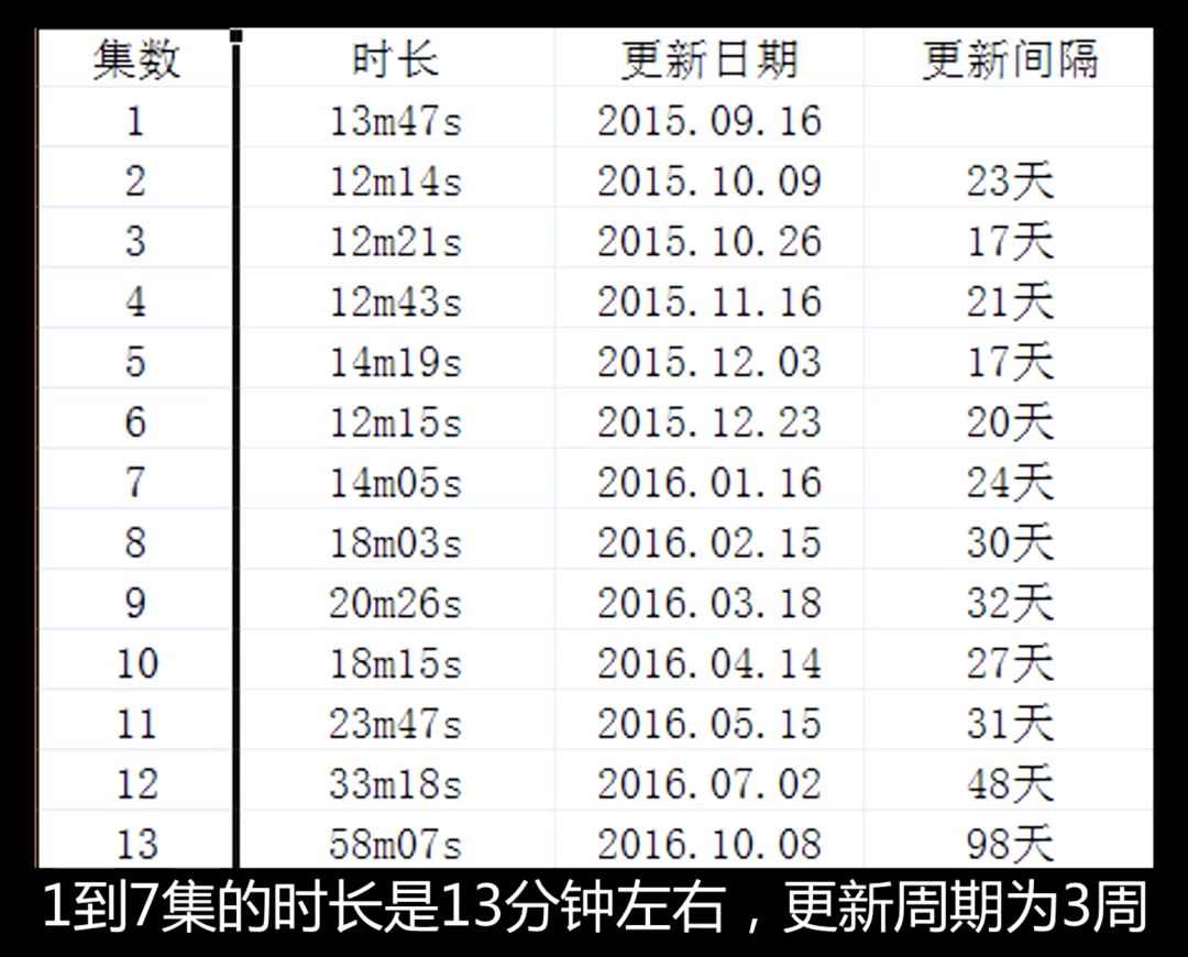 当然,制作水平的提高也造成了制作周期的延长,第 8 集开始时长接近 20 分钟,更新周期也从三周变成一个月左右。到最后,《疯味英雄》第 12 集和第 13 集分别有半小时和一小时的时长,制作周期也达到了 48 天和 98 天。