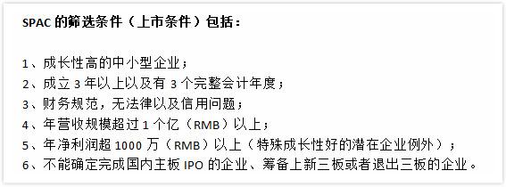 然后将这家符合条件的SPAC在纽交所或纳斯达克发行上市。目标公司将通过和已经上市SPAC并购迅速实现上市融资的目的。