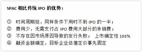 与传统的IPO相比,SPAC并购上市有时间短、费用低、并购估值高、确定性强等优势(具体操作方式会在后文详细说)。
