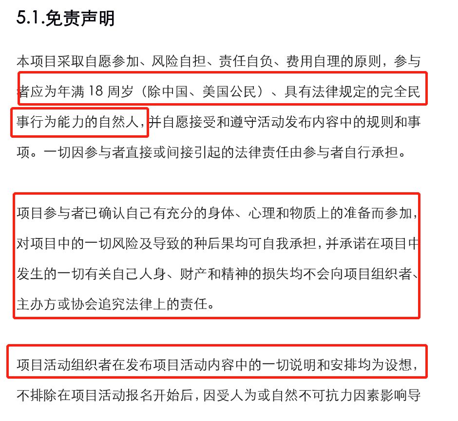 其次人家说了,你既然来玩儿,那就得遵守我们的套路,你得承诺在项目中产生的一切损失,都不能找我们麻烦,不能追究法律责任。