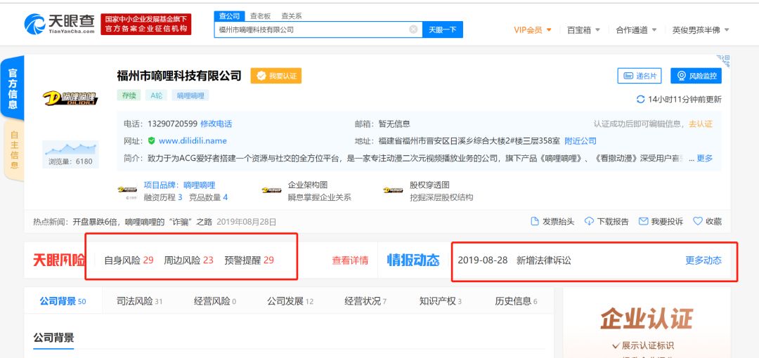 例如这个嘀哩嘀哩,你稍微查一下,就能发现情况不对劲,至于下图右上角我的ID,你们不要太在意。