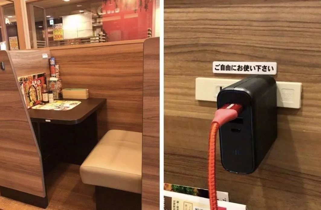 U型半包式封闭空间类似头等舱,非常适合一个人吃饭、不仅可以享受舒适的晚餐时光,而且配备了USB充电口和WIFI,基本上满足独居者的所有需求。