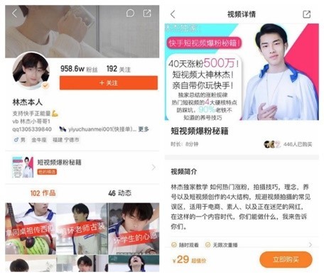 比起自己的成功,林杰更希望告诉更多人,短视频是一个真正可持续发展的职业。“快手教育”的出现和林杰不谋而合,他将自己两年拍制短视频的经验提炼凝结,汇集在《短视频爆粉秘籍》这一线上课程中,从拍摄技巧、理念、如何养号、短视频创作四块进行讲解。