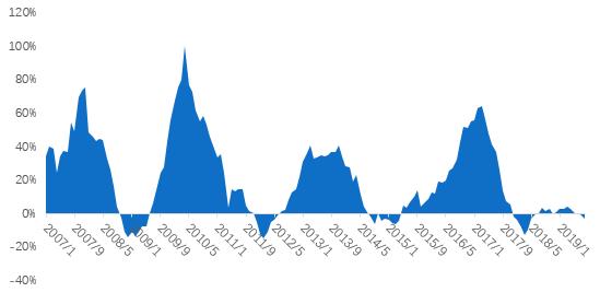 图:2012年-2019年各楼龄段二手房均价累计涨幅