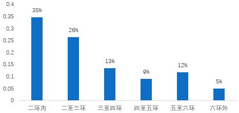 根据贝壳楼盘字典的数据,北京全市商品住宅楼龄超过30年的房屋占比大约为20%,超过20年的比例有41%。这些小区分布主要集中在市中心,35%分布在二环以内,61%分布在三环以内,74%分布在四环以内。