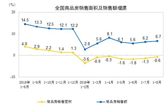 据国家统计局网站9月16日消息,2019年1-8月份,全国房地产开发投资84589亿元,同比增长10.5%,增速比1—7月份回落0.1个百分点。其中,住宅投资62187亿元,增长14.9%,增速回落0.2个百分点。