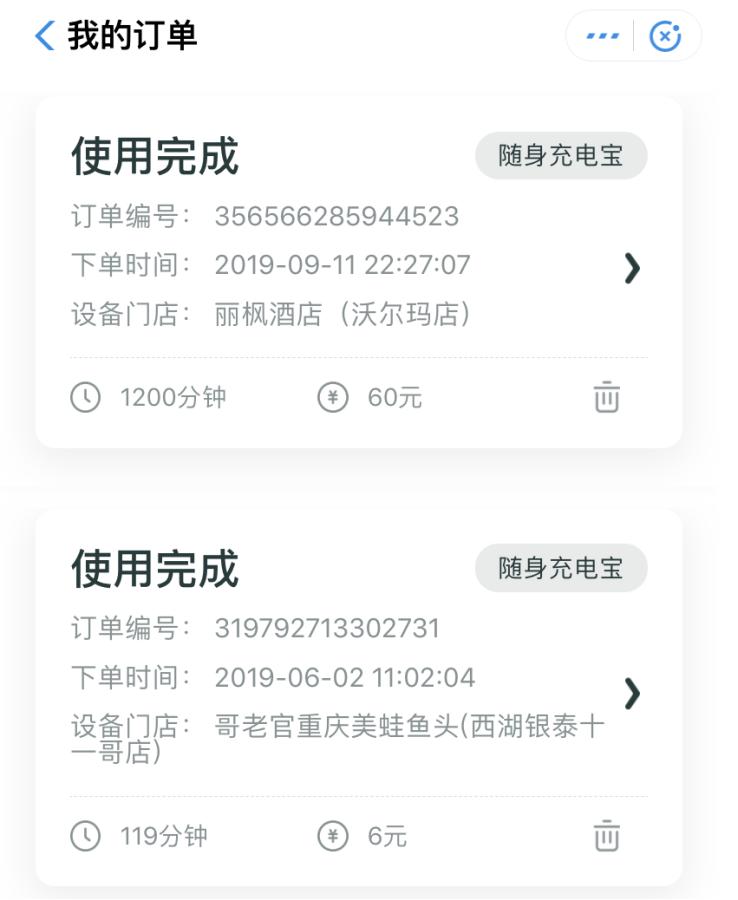 但是查看朋友的历史订单也可以发现,就算不是忘记归还,共享充电宝的每小时使用价格也是3元,跟一开始“免费1小时,之后1元/小时,封顶10元/天”这样的标准已经是相去甚远。