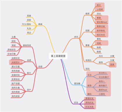 团队用思维导图的方式罗列了掌上英雄联盟的交互框架,并挖掘出还有哪些场景适合做互动。最终,我们拓展出了“资讯评论”、“直播聊天室”、”盟友圈“、“好友聊天”几个社交场景。关于这几块的体验是什么样的,大家也可以下载掌上英雄联盟查看。