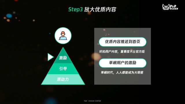 最后来到最终的设计侧目标:激励用户。虽然笔者目前也还在探索,但是方向是与此前提及的粉丝经济逻辑一致的:通过适当的奖励机制来激励草根用户的参与,并将他们逐步转化为UPGC的内容生产者。奖励机制的实现方式有很多种,将活跃用户的优质内容置顶或推送到首页,或者给到创造出一定内容量的活跃用户标签或徽章都不失为一种选择。在未来,团队也会继续深挖更多的可能性,激发用户的创作灵感与动力。