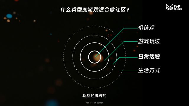 如图可见,传统的流量时代思维逻辑就像一个漏斗,先利用双平台把海量用户导进来,再通过漏斗筛选出真正的目标用户。而在当下的粉丝经济时代,目标用户的触达更像是涟漪的扩散效应,涟漪的核心是一款游戏和游戏社区所传递的价值观,第二圈时游戏的玩法,第三圈是扩散到玩家们日常谈论的话题,最后成为玩家的生活方式之一。