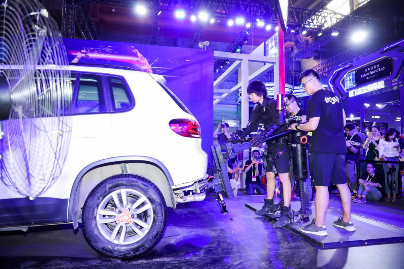 图/淘宝造物节上,外骨骼机甲商家抬起了一辆1.4吨的SUV