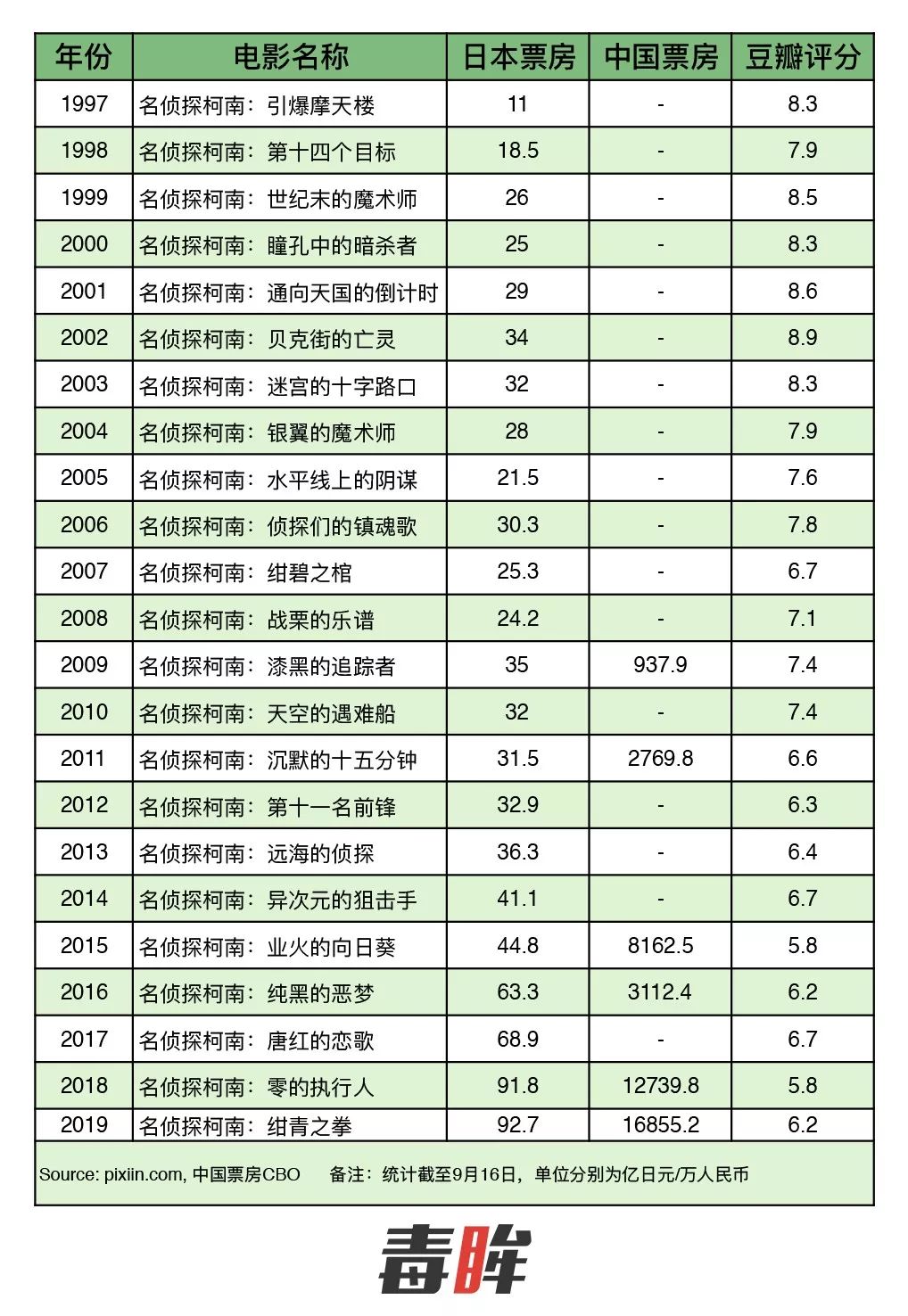 凭借着开画前三天1.6亿元的收成,《柯南2019》成功赶超去年《名侦探柯南:零的执行人》(总票房1.27亿元),创造《名侦探柯南》剧场版在国内的新纪录。在毒眸(微信ID:youhaoxifilm)看来,国庆档前并无太多强势新片,因此《柯南2019》的票房还有进一步提升的空间,进而有望成为《千与千寻》后今年第二部破2亿元的日本电影。