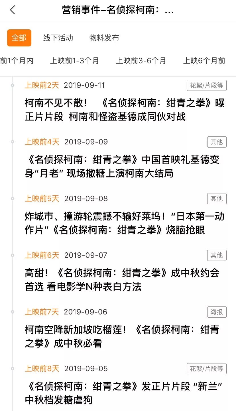 虽然从各平台公布的营销信息来看,《柯南2019》并没有像同档期电影一样做阵势很大的宣发,但是接近该片发行方的人士向毒眸透露,片子在宣发、营销层面其实下了不少功夫,只不过集中在了“自有圈层”上:“毕竟是一个20年的大IP,培养了很多粉丝用户,片方也没奢望一定要大爆卖到8亿、10亿,能够覆盖成本、票房超过上一部,对我们来说就是好成绩。所以我们的主要方向先放在了做透自有圈层上,之后才是能破圈。”