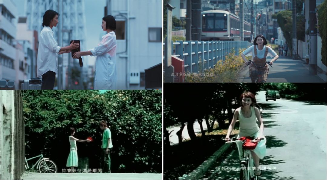 比如,女主角踩单车和递礼物的画面,是在致敬《晴天》的MV。
