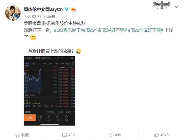 更为恐怖的是,腾讯音乐股价在新歌发布期间,直接上涨 1.24%,