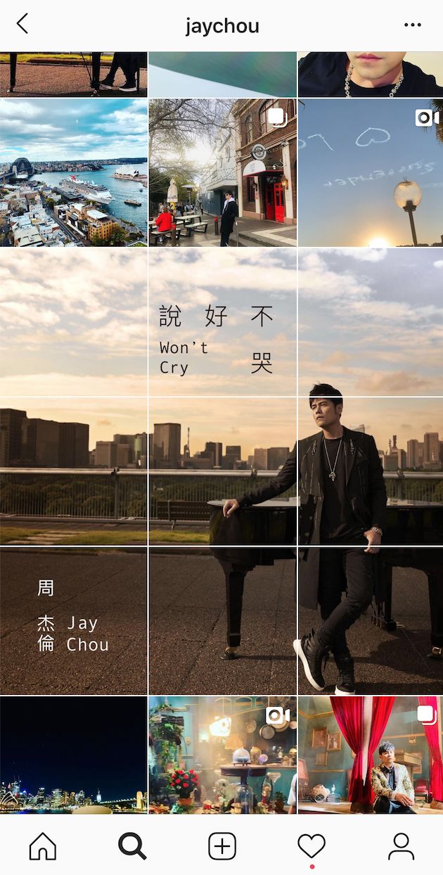 当天,周杰伦在 ins 上一连发了 9 条状态,缩略图是这样的: