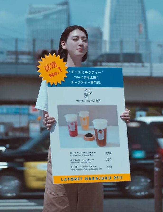 除此之外,MV 中还出现了周杰伦最爱的奶茶店,女主举的牌子上“话题 No.1”也与 7 月份的夕阳红打榜超话第一名呼应上了(MV 是 8 月份拍摄的)。