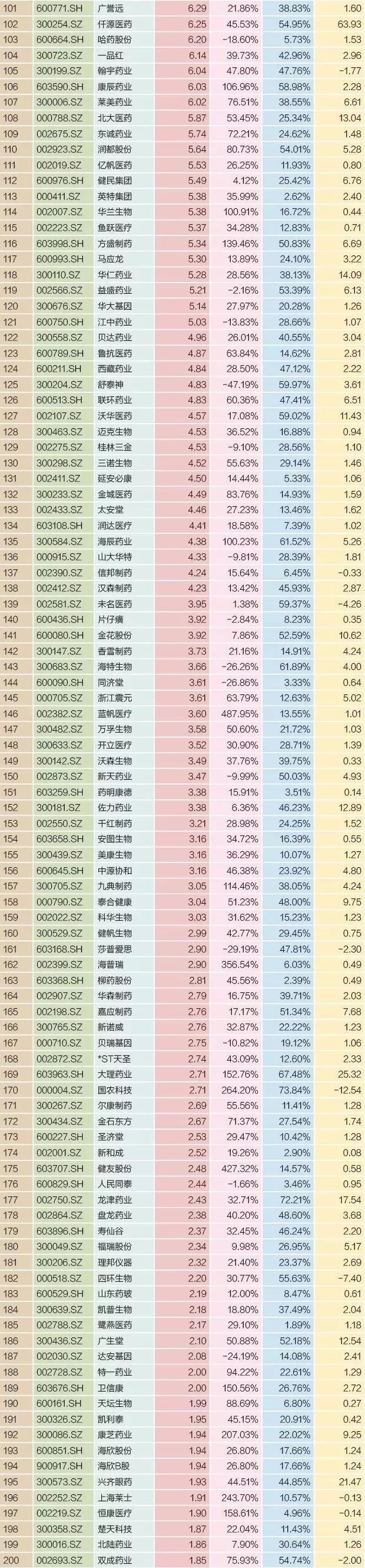 与高昂的销售费相比,净利润的增长则并不显著。在299家A股上市药企中,25家的净利润为负;119家公司要付出超过2元以上的销售费用才能得到1元净利润,另有14家公司每付出10元以上的销售费用才能获得1元净利润;9家公司的销售费用率高于60%。