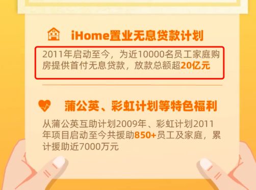 2011年,阿里巴巴推出了“iHome”计划,为员工提供20亿元无息置业贷款。