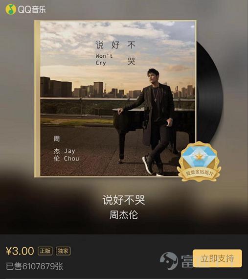 该单曲在QQ音乐上售价为 3元,目前该单曲QQ音乐的销售额已经超过1800万元,创造了QQ音乐的单曲售卖纪录,甚至一度导致腾讯音乐的宕机。