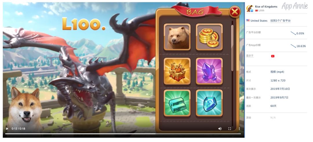 从推广渠道来看,除了 Facebook 、YouTube 、Twitter 等传统社交、流媒体推广平台以外,我们还可以从网盟优化后展示的广告位中得到一些启发。据 App Annie 统计,截至2019年8月底,在《万国觉醒》展示时间最长的10款广告位游戏(可通过广告变现的游戏)中,2款为末世生存题材,4款Idle放置类,2款 Battle 对战类,其余2款为像素风动作 RPG 及 Tycoon 类。有趣的是,这正与我们前面发现的《万国觉醒》用户偏好类型非常相似,也侧面印证了其在精准买量方面的确值得称道。