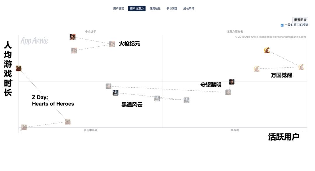 举例来说,Funplus 公司出品的《Z Day: Hearts of Heroes》在其上线一年的时间中,玩家的人均每月游戏时长从4.5小时提升至20.5小时,而其月均收入也翻了6倍。但在游戏时长增长的过程中,其用户规模同样经历了”洗“的过程——用户规模先增长后下降,最终留存的才是为其贡献持续收入增长的核心用户。