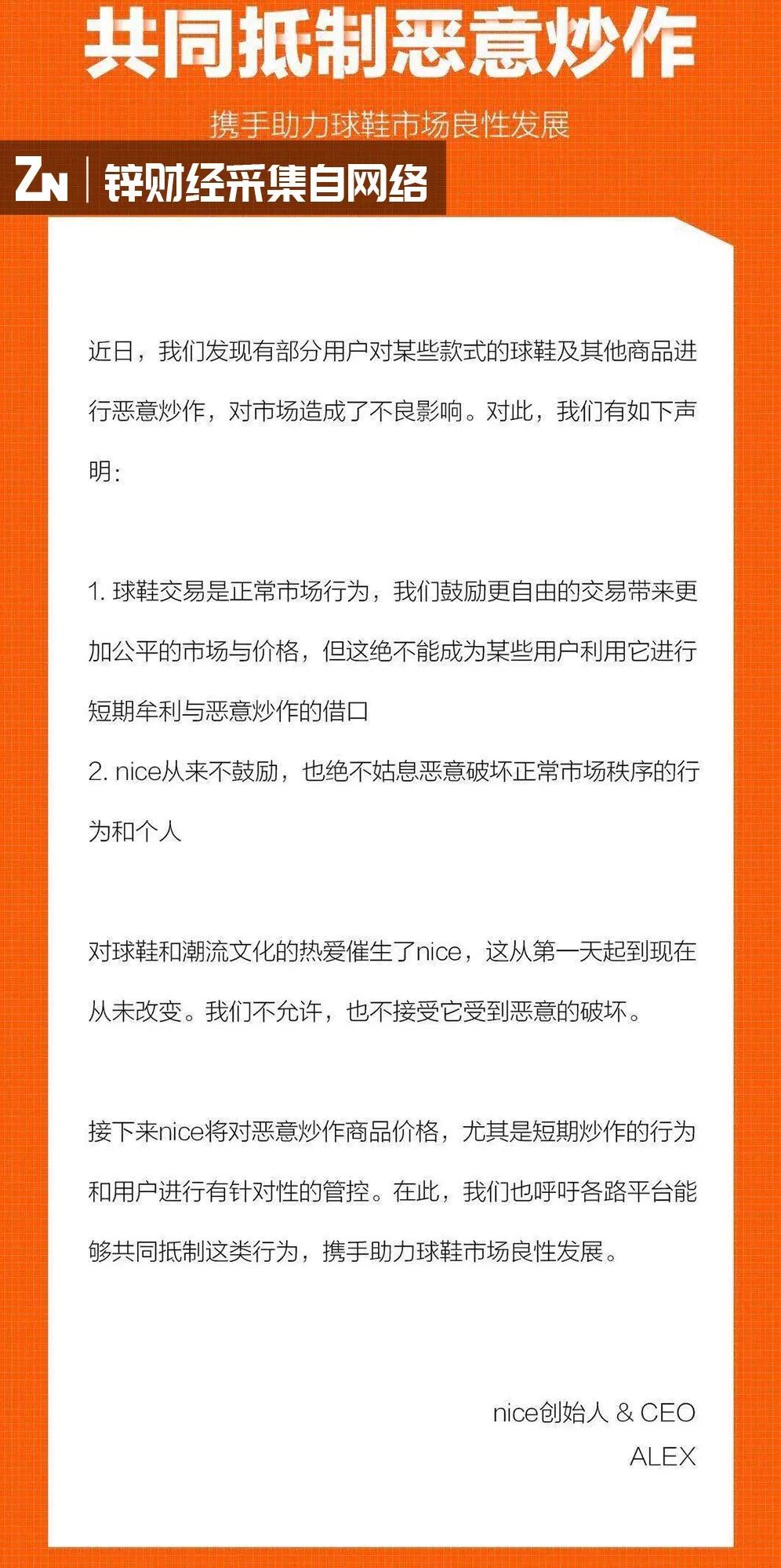 NICE的防止恶意炒鞋声明