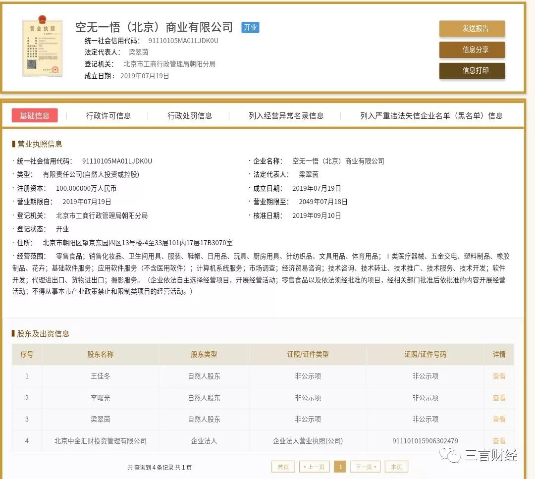 据36氪报道,张巳丁的新公司名为“空无一悟(北京)商业有限公司”,注册资本 100 万元,成立于今年7月19日,但工商资料中并没有张巳丁的名字。