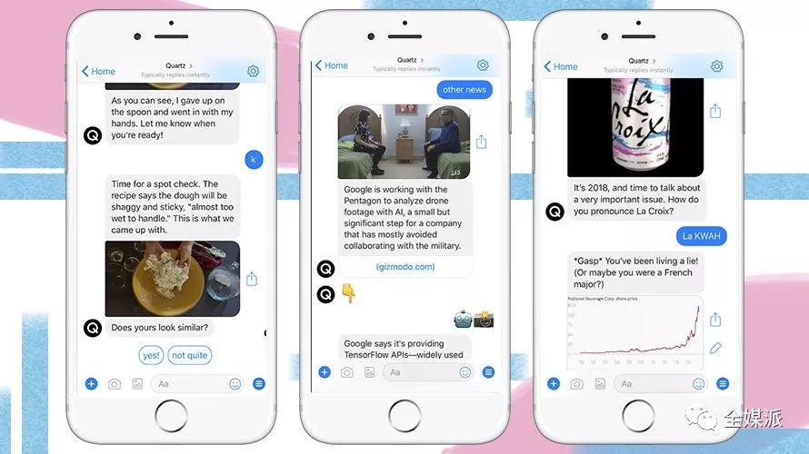 带着这样的愿景,Quartz将打造聊天机器人作为发展的重中之重,让用户和AI通过文字、语音或其他创新性地交互方式实现高效的人机互动。目前,这一研究还处于发展初期,但是聊天机器人已经可以实现对用户需求的自动读取,同时能够根据用户的需求提供相关内容,如围绕着某一主题、人物或地点的新闻报道等。