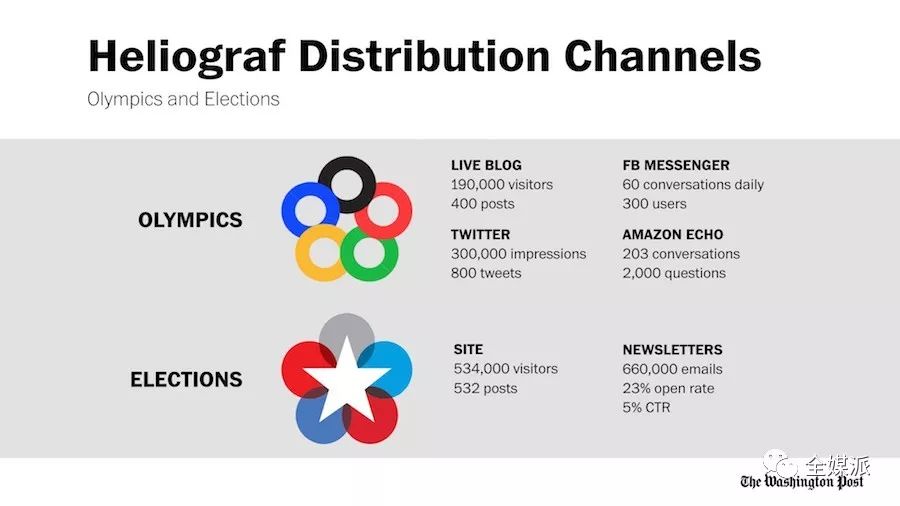 《华盛顿邮报》的自动写稿机器人“Heliograf”自2016年里约奥运会崭露头角。通过对海量数据的分析和整合,“Heliograf”能够将信息与事先置入的报道模板进行对应,自动生成新闻稿,并推送至不同的平台。