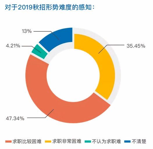 但我们查询了一下数据,发现19年的应届生真的比往年难许多。根据「实习僧」平台的调查数据显示:对于2019秋招的就业难度,8成以上的毕业生表示存在困难。
