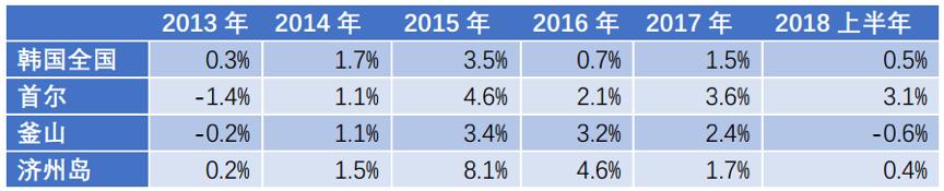 ▲韩国各地房价变化趋势数据来源:韩国鉴定院