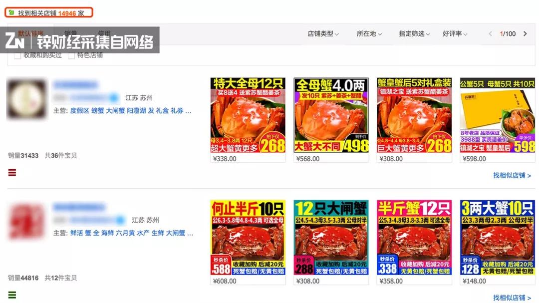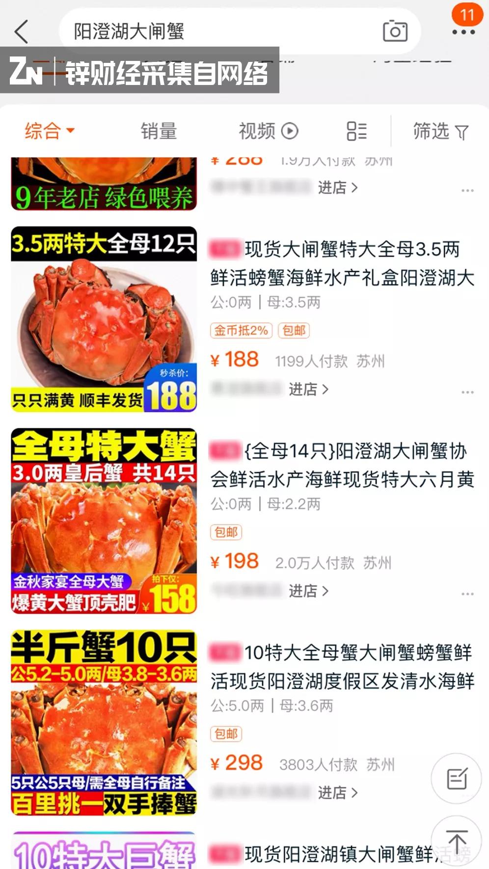 某电商平台搜索出一万多家大闸蟹商家