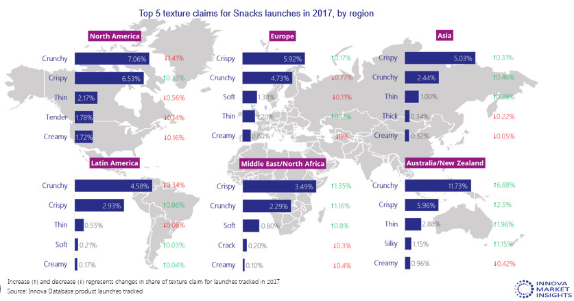 全球各地区2017年新推出零食的Top5质构宣称