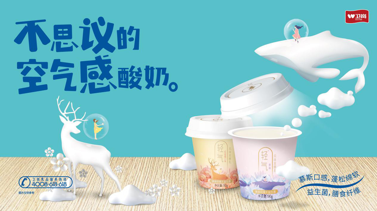 除了通过添加一些成分达到对食品饮料质构的把控,质构创新还能怎么玩?卫岗乳业在7月份新推出的充气酸奶,就是在生产过程中,通过高速搅打,给发酵乳加入特定比例气体(按体积计),从而实现如慕斯般的口感。除了能获得口感上如甜品般的放纵体验,由于加入了气体,所以同等体积下,充气酸奶比普通酸奶质量更轻,因此热量和脂肪含量也更低。