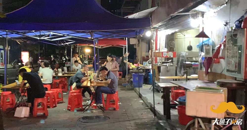 晚上10点,虽然刚下过雨,但还是有不少人坐在店里吃宵夜。旁边的一个简陋的烤肉小摊,还有两个人在排队。