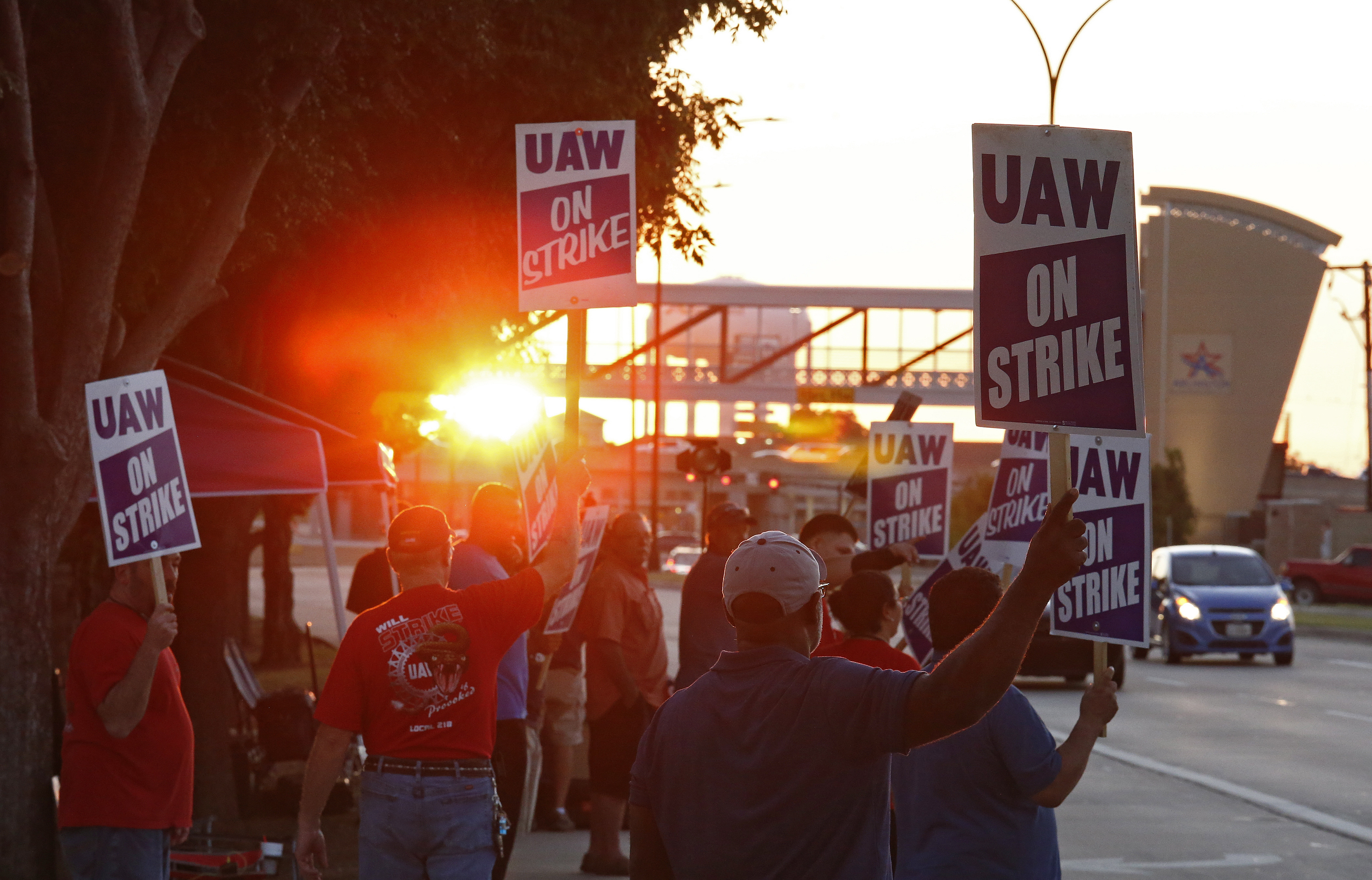 9月17日,联合汽车工人( UAW )的成员在通用汽车工厂外发起抗议