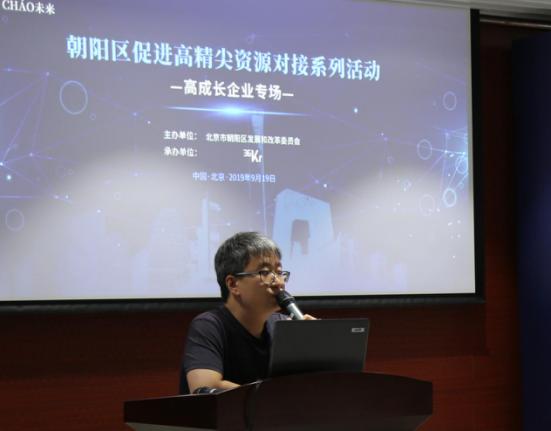 本次活动是朝阳区高精尖资源对接会——“chao未来”系列活动的第六场,聚焦人工智能、5G、物联网、科技服务等高科技领域,邀请了朝阳区具有较大发展潜力的高成长型创新企业到场,通过路演分享与对话论坛的形式,深入挖掘区内优质项目,为企业搭建互动交流平台,拓宽融资渠道,加速朝阳区高成长企业成长。