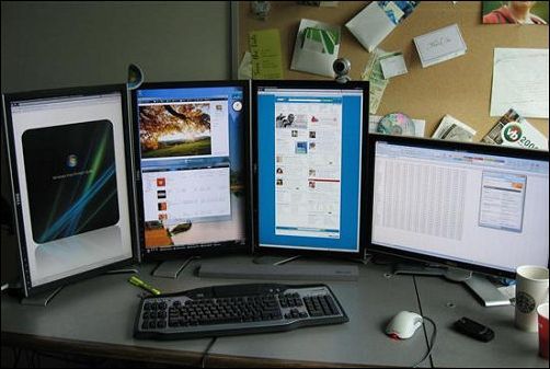 “如果你在项目中工作需要处理大量的文档,你是想要一个大的会议桌还是一个飞机上的小桌板儿?”约翰斯塔斯克(Stasko)说道,他是一位乔治亚理工大学的交互计算学教授,曾研究多显示器的使用效果。“我身边选择了多显的人没有愿意退回到单显示器的了。”