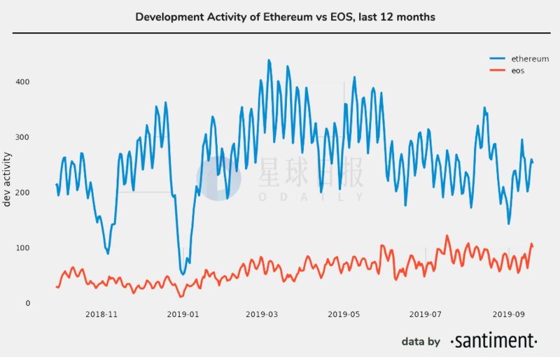 2.过去12个月以太坊区块链上的开发活动是EOS的近4.5倍
