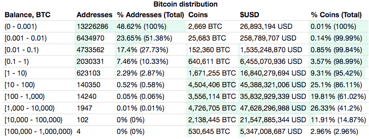 比特币地址中,48.62% 的地址占有全部币量的 0.01%,较上周微涨;23.65% 的地址占有全部币量的 0.14%,较上周下降5%。