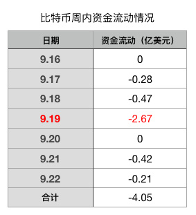 继上周流出2亿美元之后,比特币在上周继续流出4亿美元,9月19日市场大跌后资金出逃加剧。