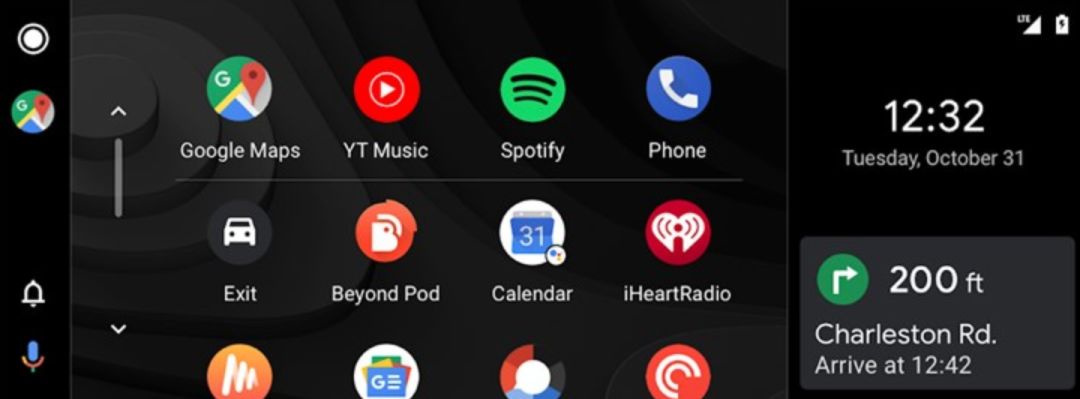 首先我们说,谷歌Android Auto的主界面要比苹果的CarPlay更加直接,其不需要用户左滑右滑去找「所有应用程序」界面,逻辑层级更简洁。尽管你可能觉得苹果CarPlay可以在主界面对导航、音乐等信息直接进行控制也很方便,但谷歌Android Auto通过动态导航栏很好的弥补了这一点,且更加灵活。