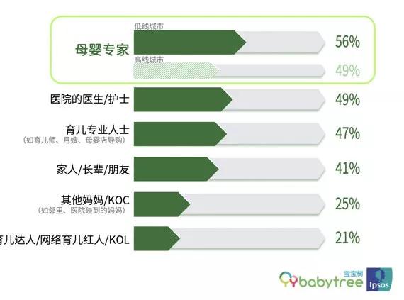 报告中显示,20%的低线城市妈妈会从微商/微信妈妈群/微信朋友圈购买宝宝用的产品,45%的人觉得,只要是家人/朋友推荐的品牌,即便是自己不知道的品牌也愿意接受。