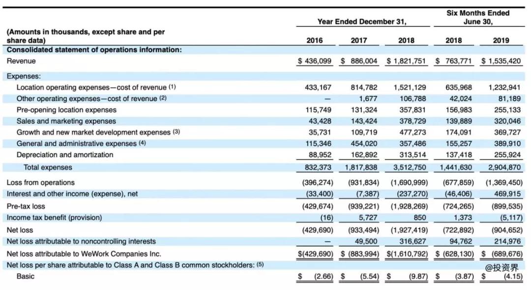 虽然2019年上半年,WeWork创造了15.3亿美元的收入,是去年同期的两倍多。但根据公认会计准则(GAAP), WeWork同期亏损9.04亿美元,净利润率为-59%。