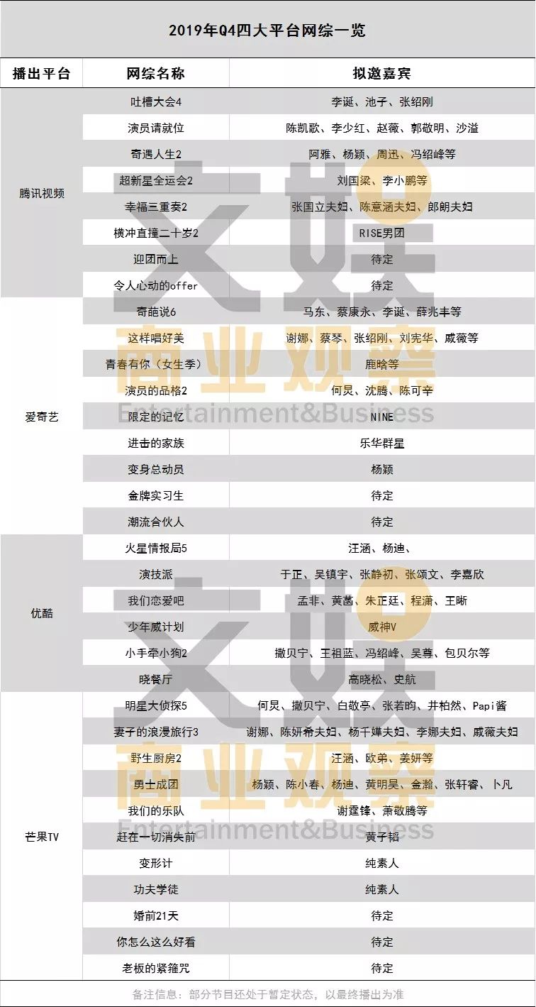 Q4网综前瞻:综N代华丽回归,演技类、职场类新品亮相