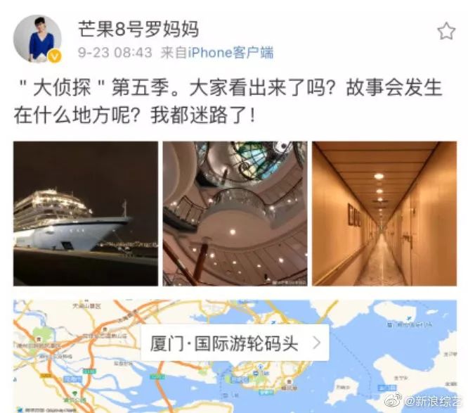 除了阵容,还有拍摄地也备受关注。按照近两年该节目的惯例,一般第一案都为实景拍摄,而这一次也不例外。根据微博账号“芒果8号罗妈妈”爆料,首期节目录制地点是在厦门的一艘游轮上,不少网友猜测主题为“恐怖游轮”。