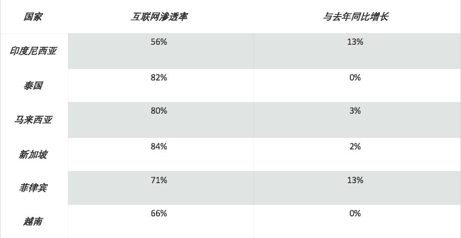 东南亚地区各个国家都在极力发展网络基础建设,各个国家的互联网渗透率不断攀升。